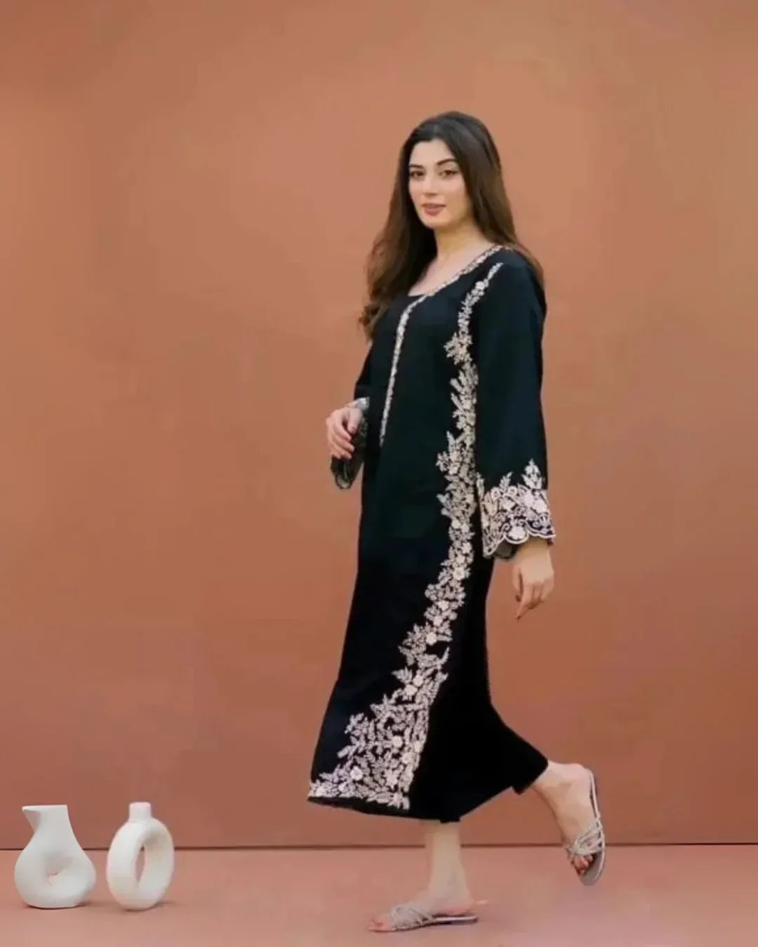 Timeless and effortlessly chic — our Black Elegance 2PC pairs rich black fabric with striking white embroidery for a refined contrast. Crafted from premium winter linen, this outfit blends sophistication with comfort, making it a perfect pick for winter lunches, evening outings, or formal gatherings.