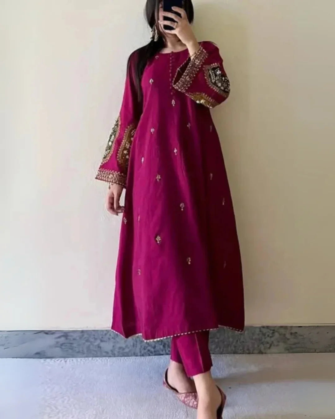 Radiate effortless elegance with our Zircoon Frock in a rich plum hue — the perfect blend of sophistication and comfort. Crafted from premium winter fabric, this frock features a graceful flare and subtle detailing, giving it a chic and timeless appeal. Ideal for cozy winter gatherings or casual daytime elegance.