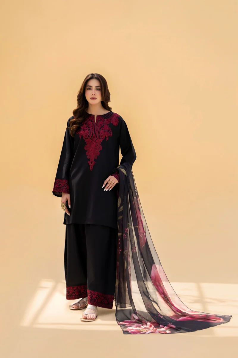Exuding sophistication and grace, this exquisite 3-piece linen ensemble is designed for those who embrace regal charm.