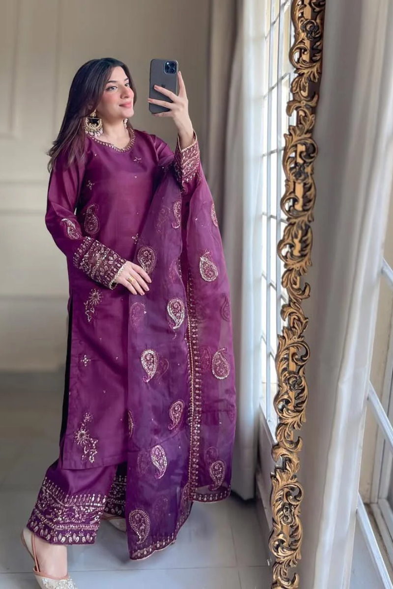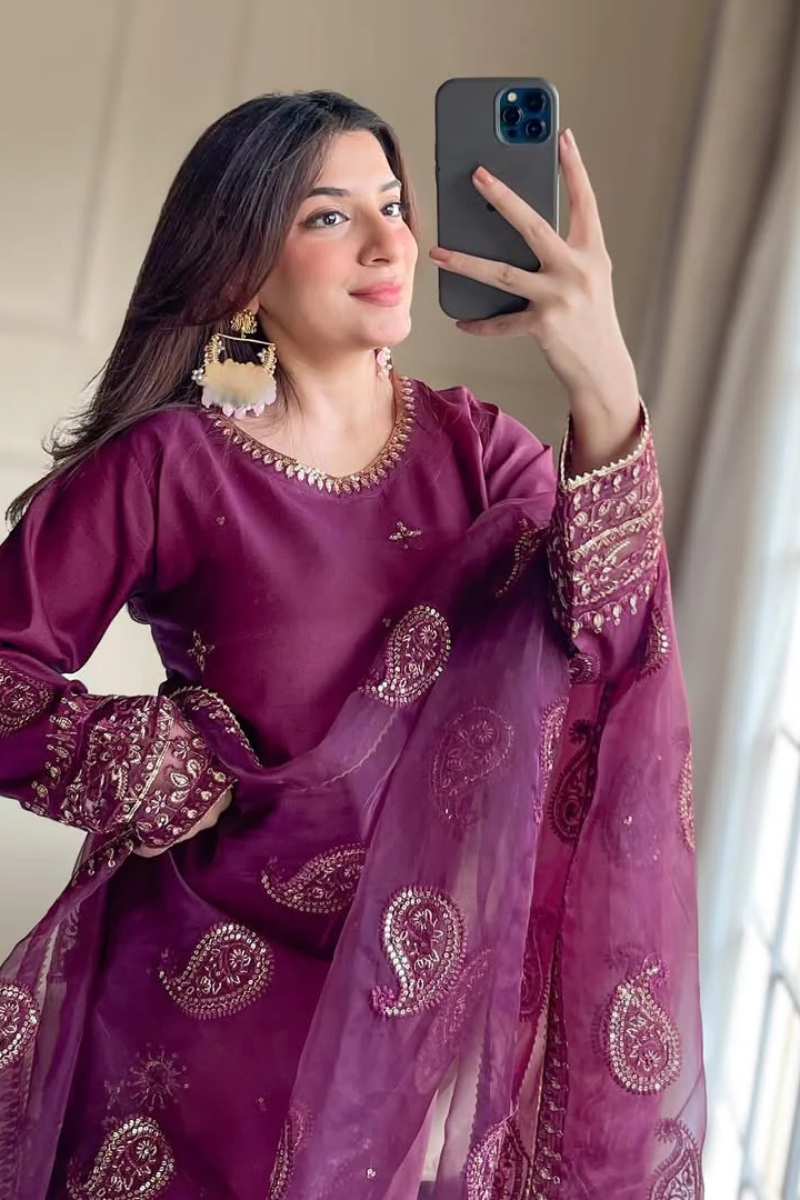 Shirt: Embroidered fabric (likely khaddar, lawn, or cambric depending on season)