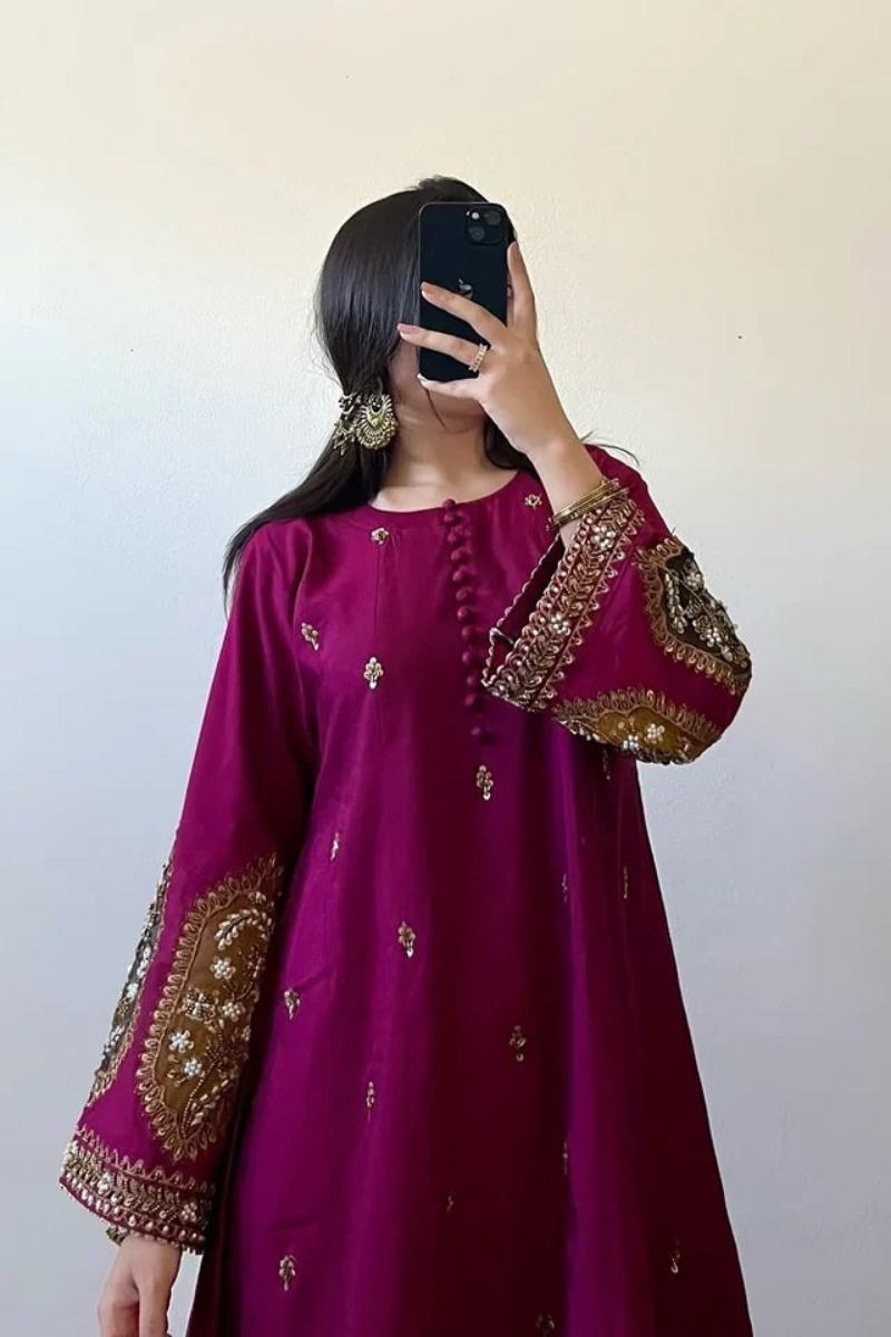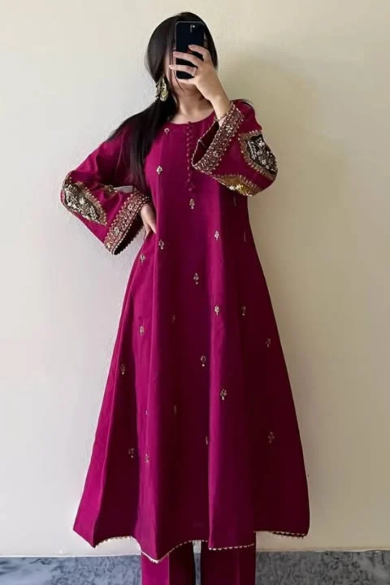 Radiate effortless elegance with our Zircoon Frock in a rich plum hue — the perfect blend of sophistication and comfort. Crafted from premium winter fabric, this frock features a graceful flare and subtle detailing, giving it a chic and timeless appeal. Ideal for cozy winter gatherings or casual daytime elegance.